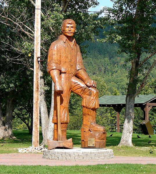 I got to think about Paul Bunyan as a metaphor but I realized the Americans has taken him as their own in spite of him being modeled on a French Canadian.. How about a real French Canadian giant, lesser known, lumberjack from around these parts . Below is a carving Big Joe Mufferaw over at Mattawa on the Ottawa River.